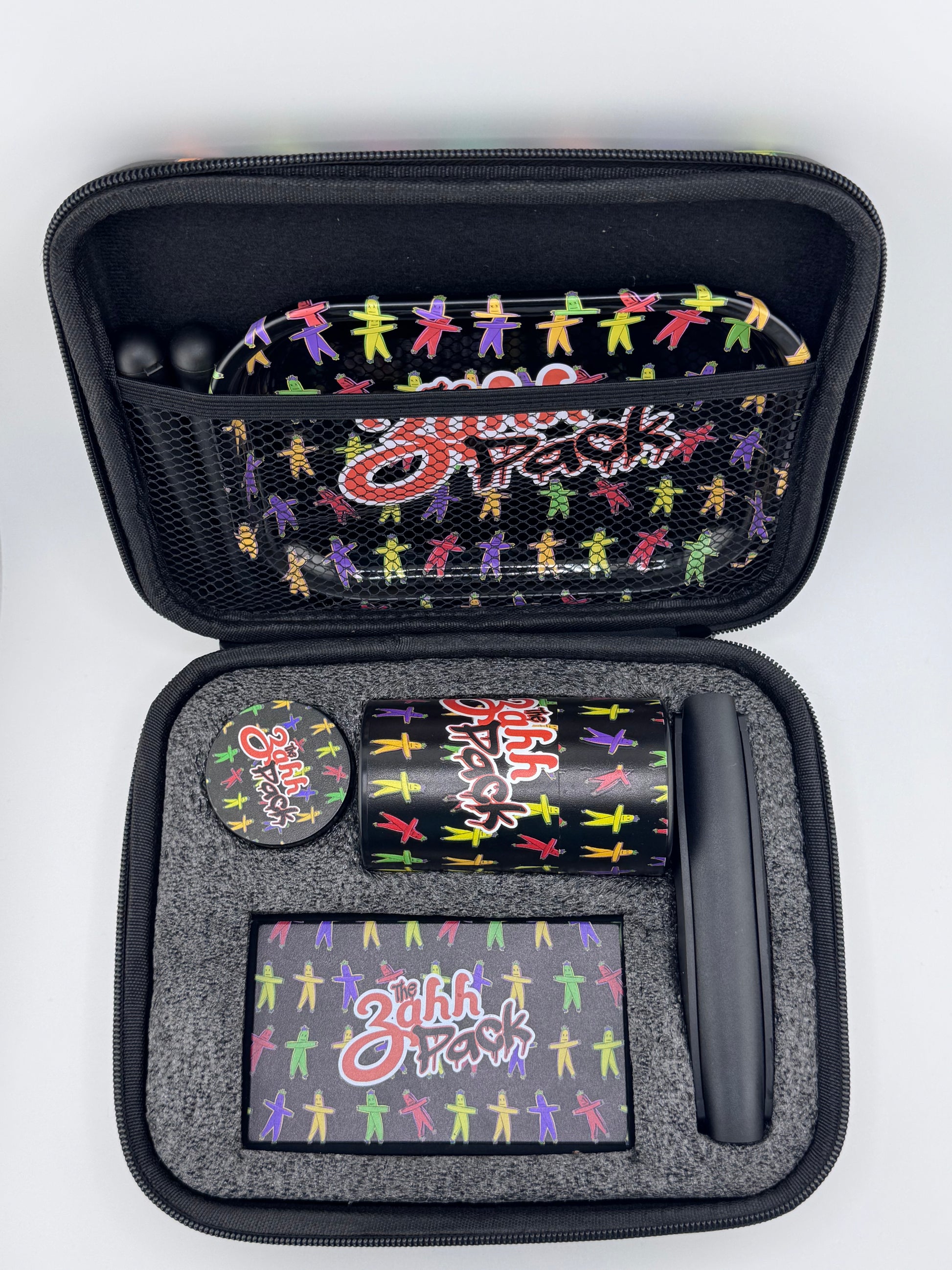 The Zahh Kit — your all-in-one, on-the-go setup. Compact, portable, and packed with every tool you need to roll, grind, and spark anywhere in style.